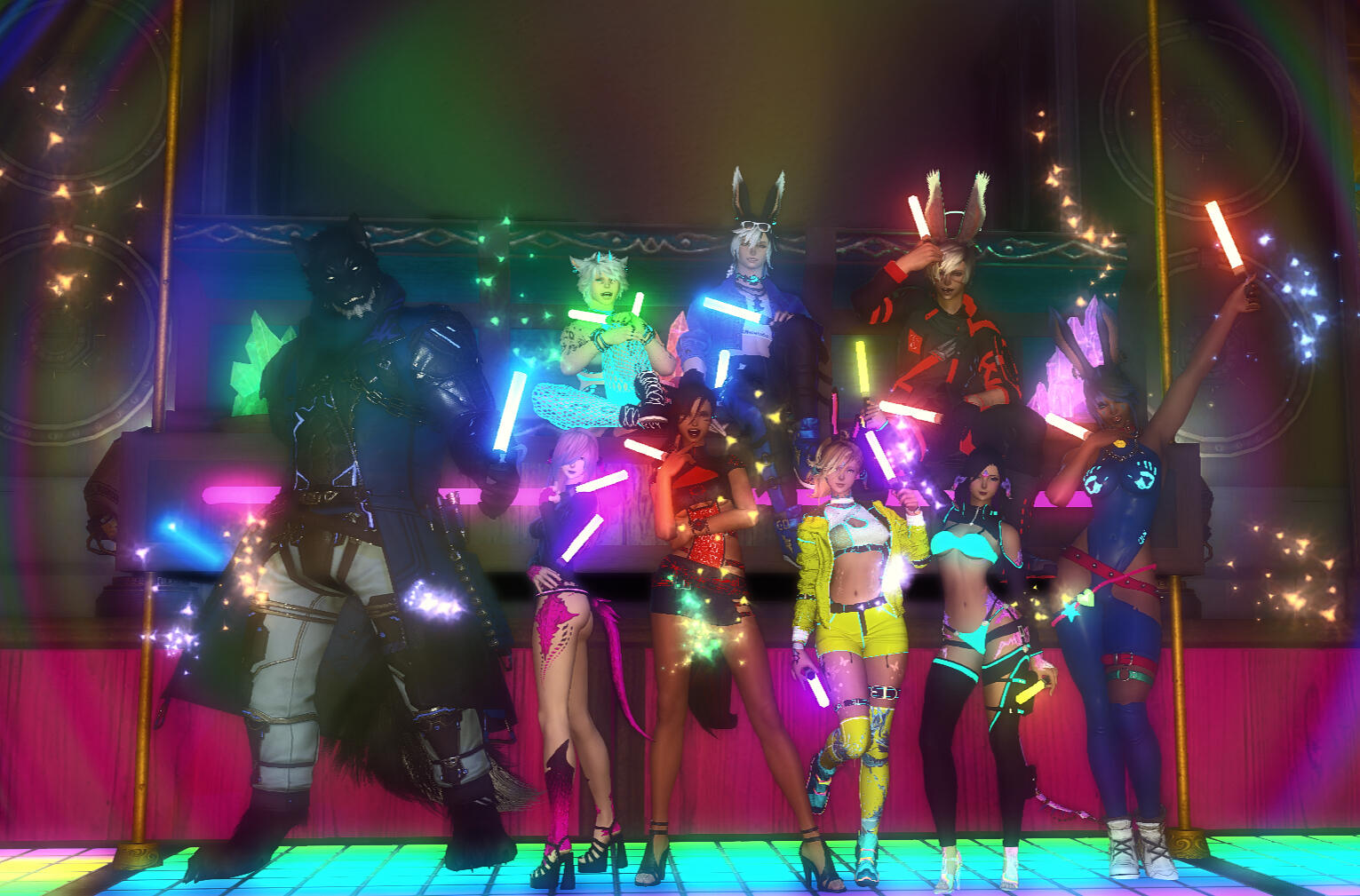 Rabbit's Reverie is a club that features dance, music, and festivities. It's full of color and good vibes, meant as a happy escape for those looking for one.