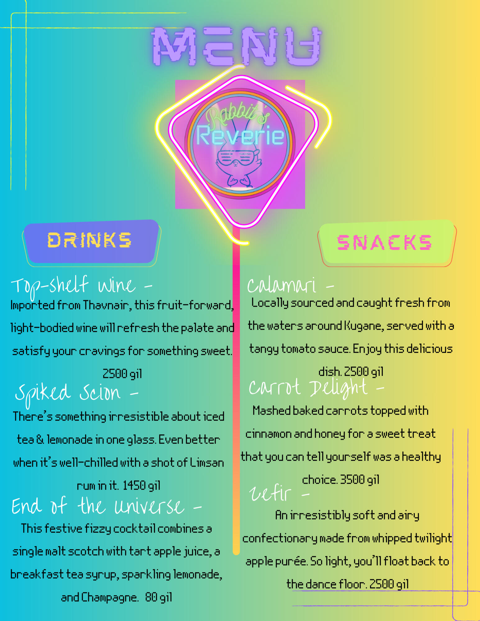 Rabbit's Reverie is a club that features dance, music, and festivities. It's full of color and good vibes, meant as a happy escape for those looking for one.